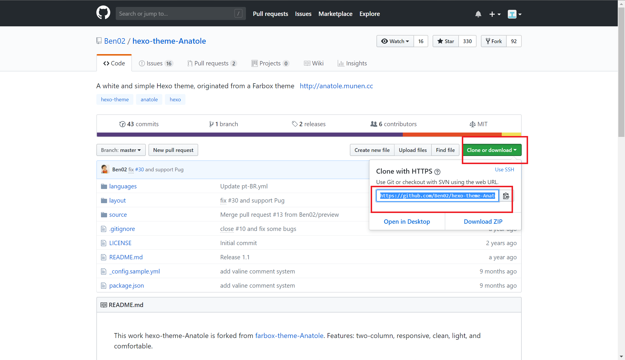 git clone https://github.com/Ben02/hexo-theme-Anatole.git