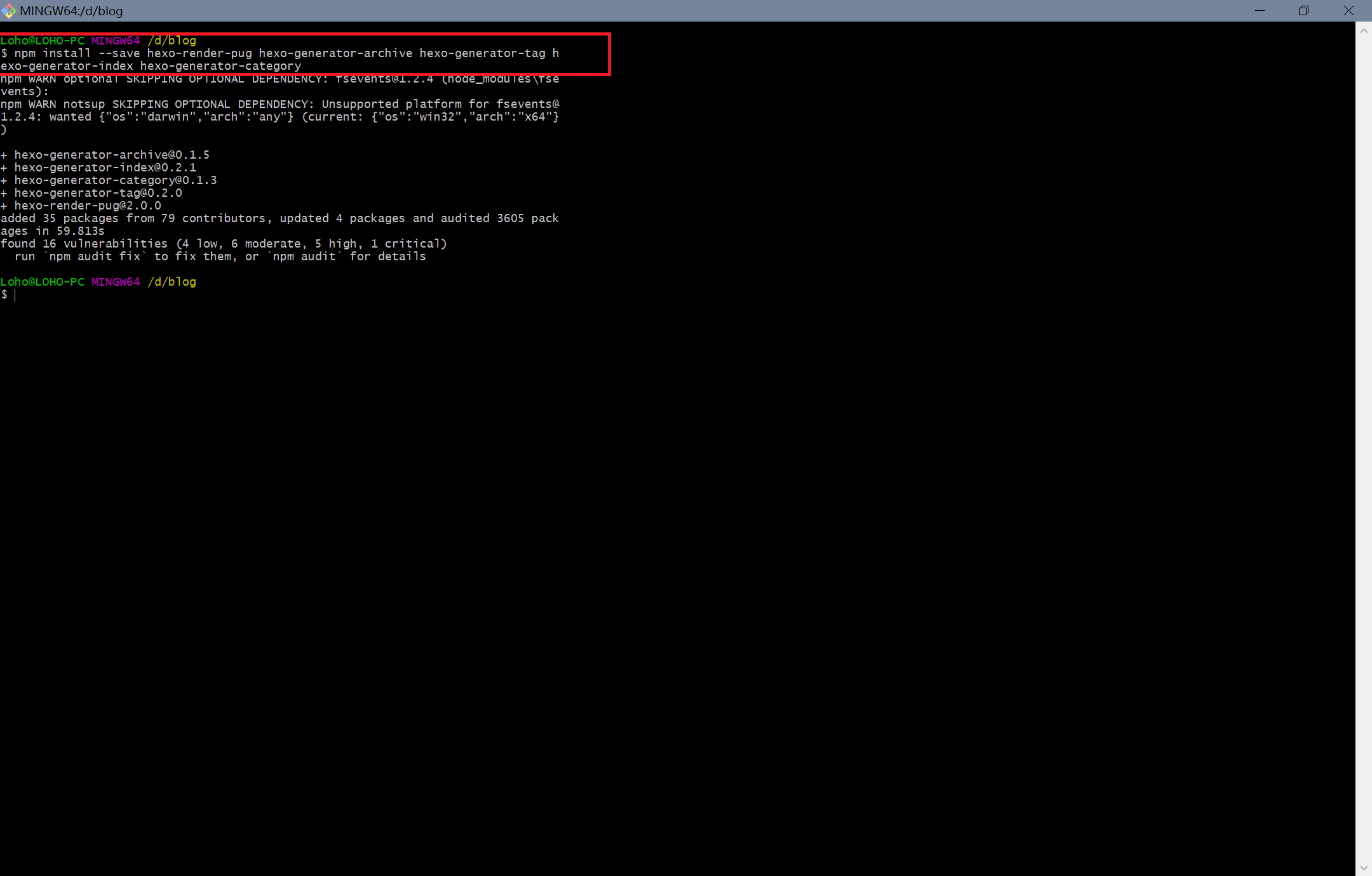 npm install --save hexo-render-pug hexo-generator-archive hexo-generator-tag hexo-generator-index hexo-generator-category