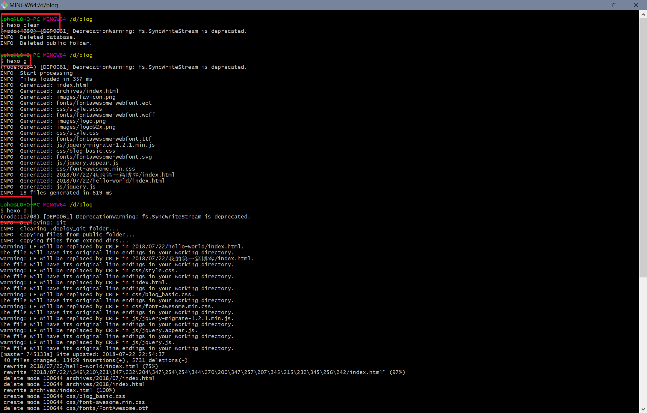 hexo clean && hexo g -d